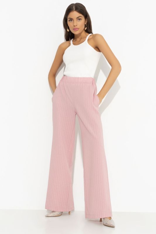 Брюки розовые в полоску с карманами от производителя Charutti. Модель свободного силуэта, выполнена из костюмного полотна «Кадиллак». Притачной пояс на резинке. Идеальный выбор для создания стильного образа.
