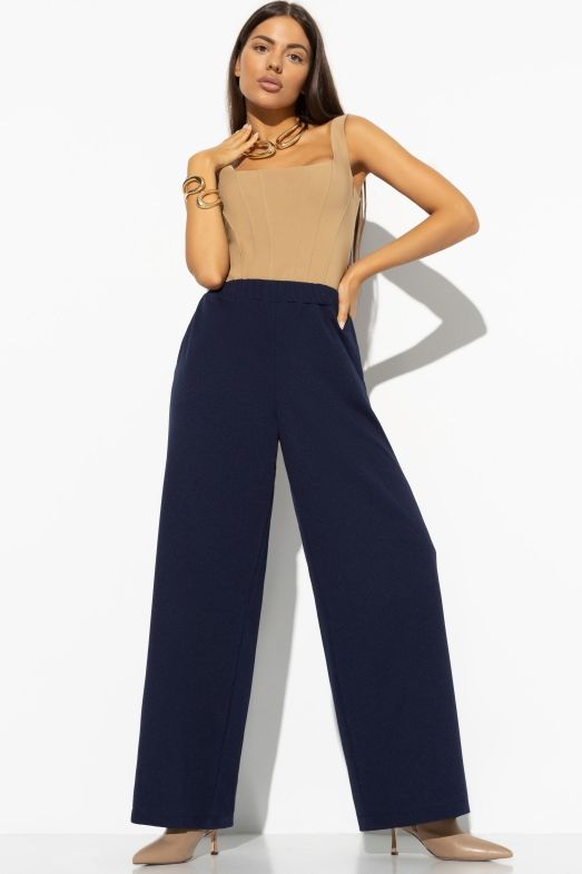 Брюки свободные синие из трикотажа