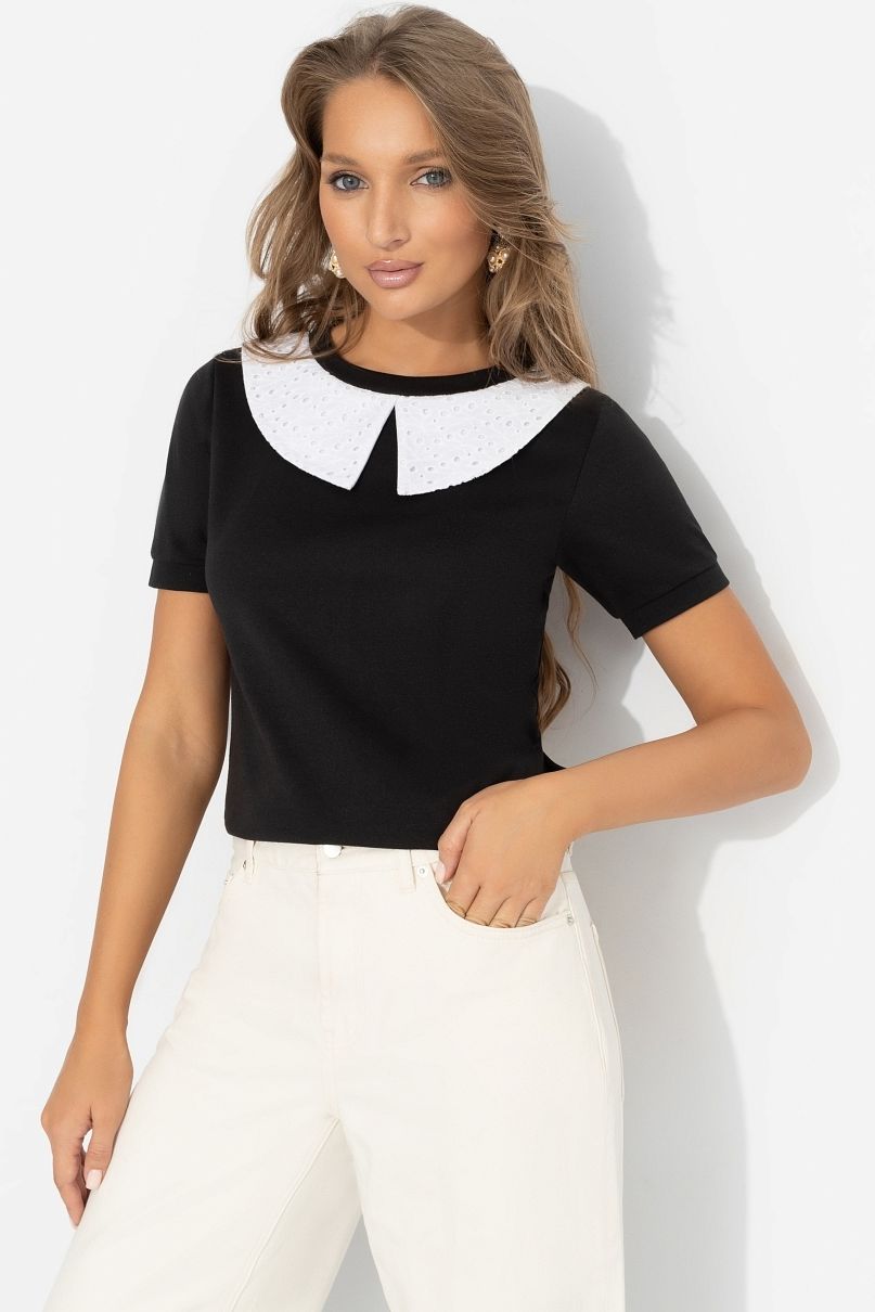 Футболка чёрная с воротничком от компании Charutti. Модель прямого силуэта, выполнена из трикотажной ткани "милано". Короткие рукава. Идеальный выбор на каждый день.