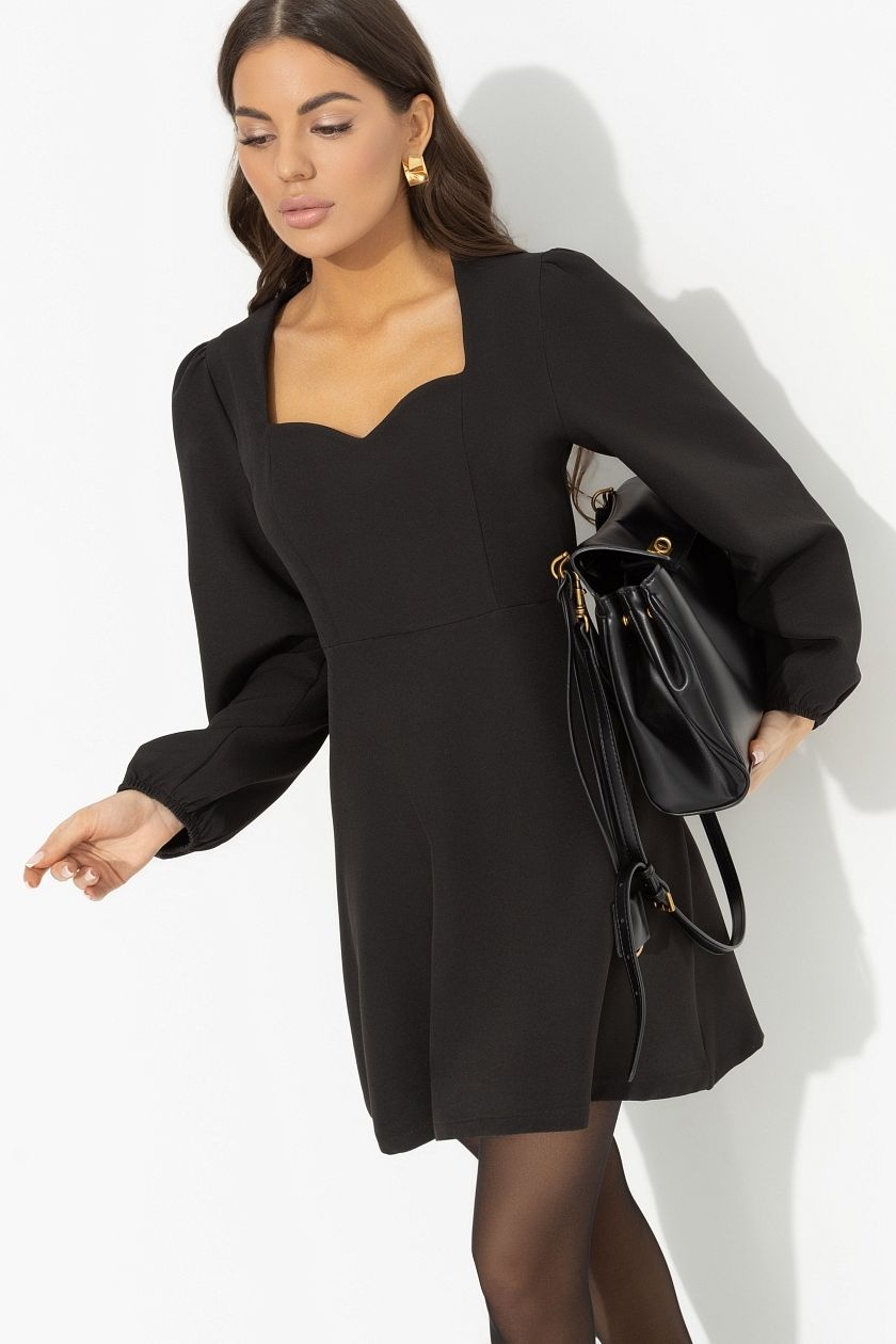 Платье чёрное с длинными рукавами от компании Charutti, выполнено из костюмного полотна "барби". Модель полуприлегающего силуэта, фигурный вырез в зоне декольте. Рукав оформлен тонкой скрытой резинкой. Расклешенная юбка изделия. Платье застегивается на скрытую молнию по спинке. Это Ваш отличный образ, в котором вы всегда чувствуете себя уверенно.