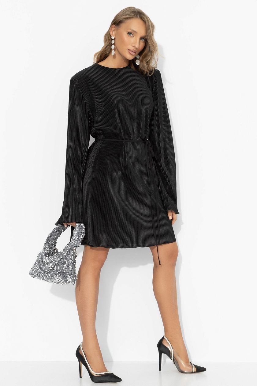 Платье чёрное трикотажное с акцентными плечами