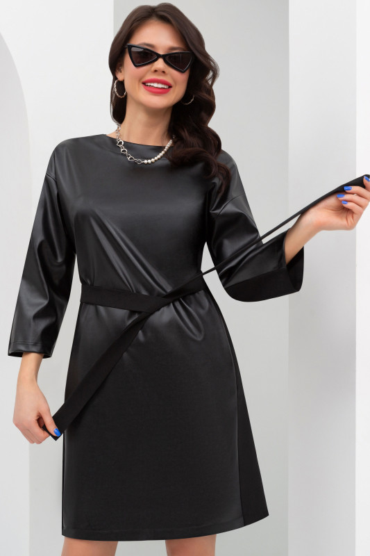 Стильное женское платье от компании Charutti. Модель прямого силуэта, выполнена из костюмной ткани "поливискоза" и экокожи. Круглый вырез горловины. Втачные рукава длиной 3/4, со спущенной линией плеча. Тканевый пояс входит в комплект. По бокам втачные карманы. Идеальный выбор на каждый день.