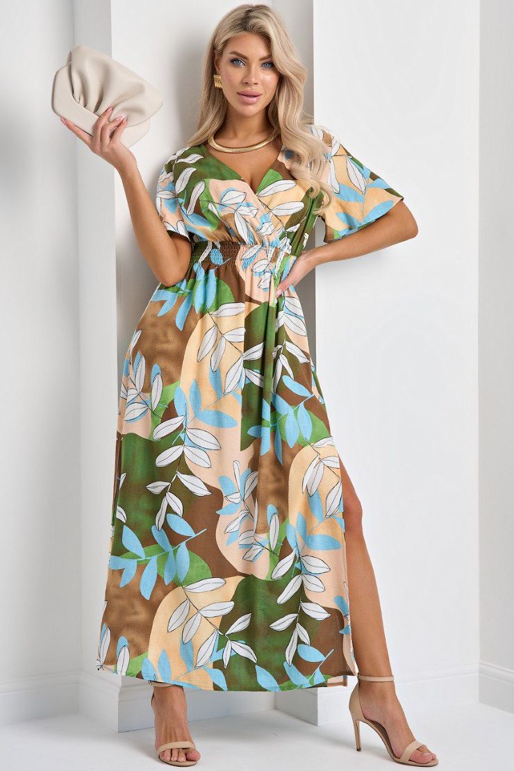 Платье длинное лёгкое с коротким расклешенным рукавом