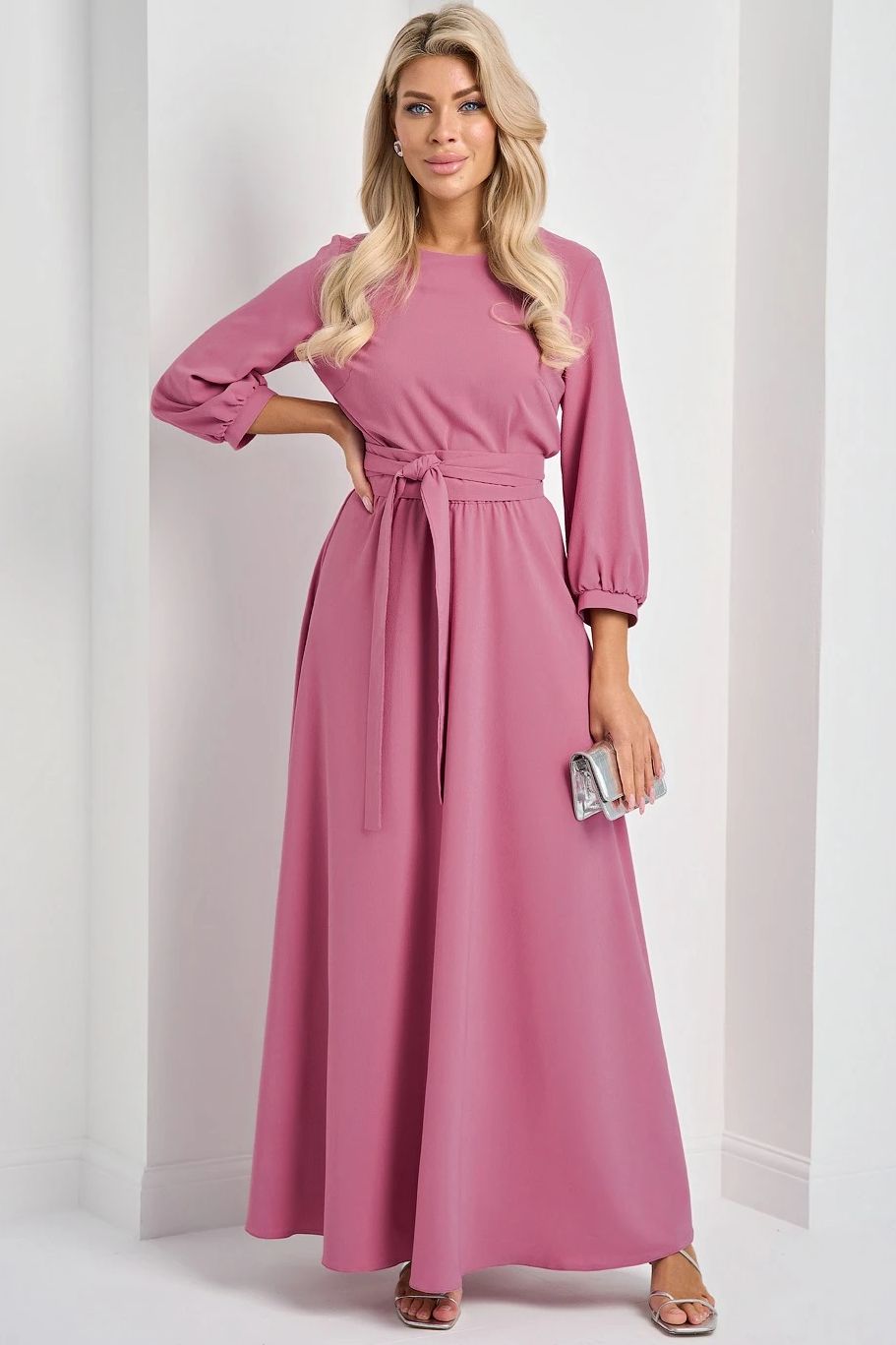 Платье длинное розовое с поясом-кушак от производителя Jetty. Модель полуприлегающего силуэта, выполнена из плательного полотна. Круглый вырез горловины. Втачные укороченные рукава. Прекрасно дополнит Ваш гардероб для любого мероприятия.