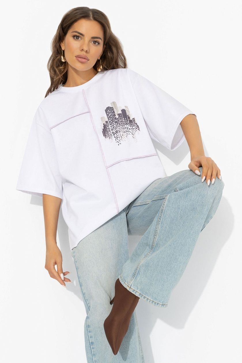 Футболка белая со швами наружу от компании Charutti. Модель свободного кроя, выполнена из трикотажного полотна "Милано". Круглый вырез горловины. Идеальный выбор для создания неповторимого образа.
