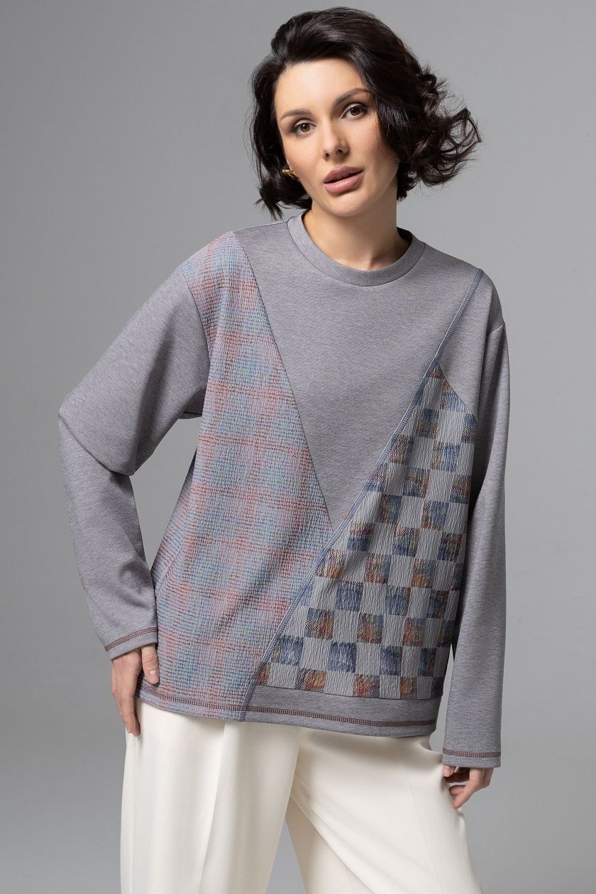 Лонгслив серый с акцентными швами от компании Charutti. Лонгслив свободного кроя, выполнен из трикотажного полотна. Круглый вырез горловины. Длинные рукава. Идеальный выбор для создания неповторимого образа.