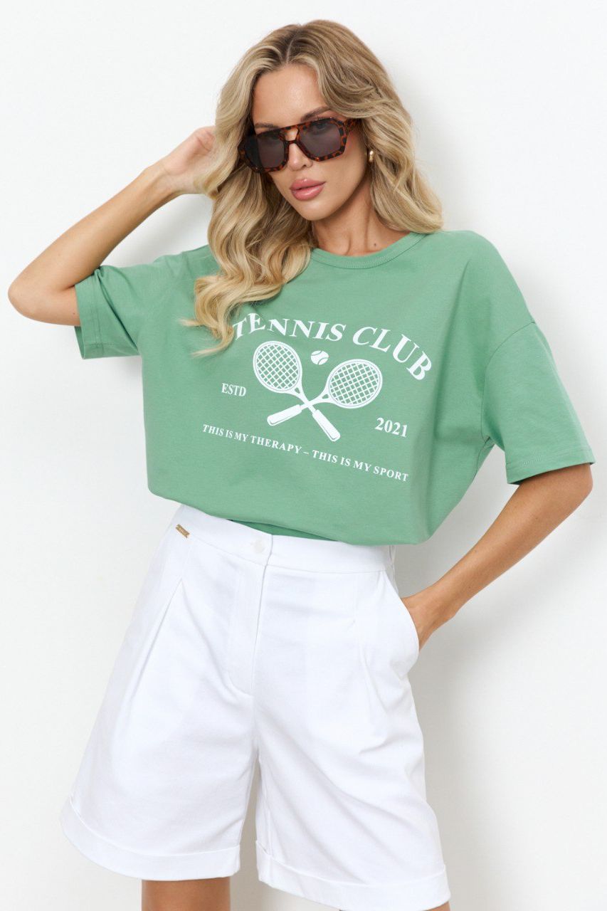 Футболка трикотажная оливкового цвета с печатным принтом