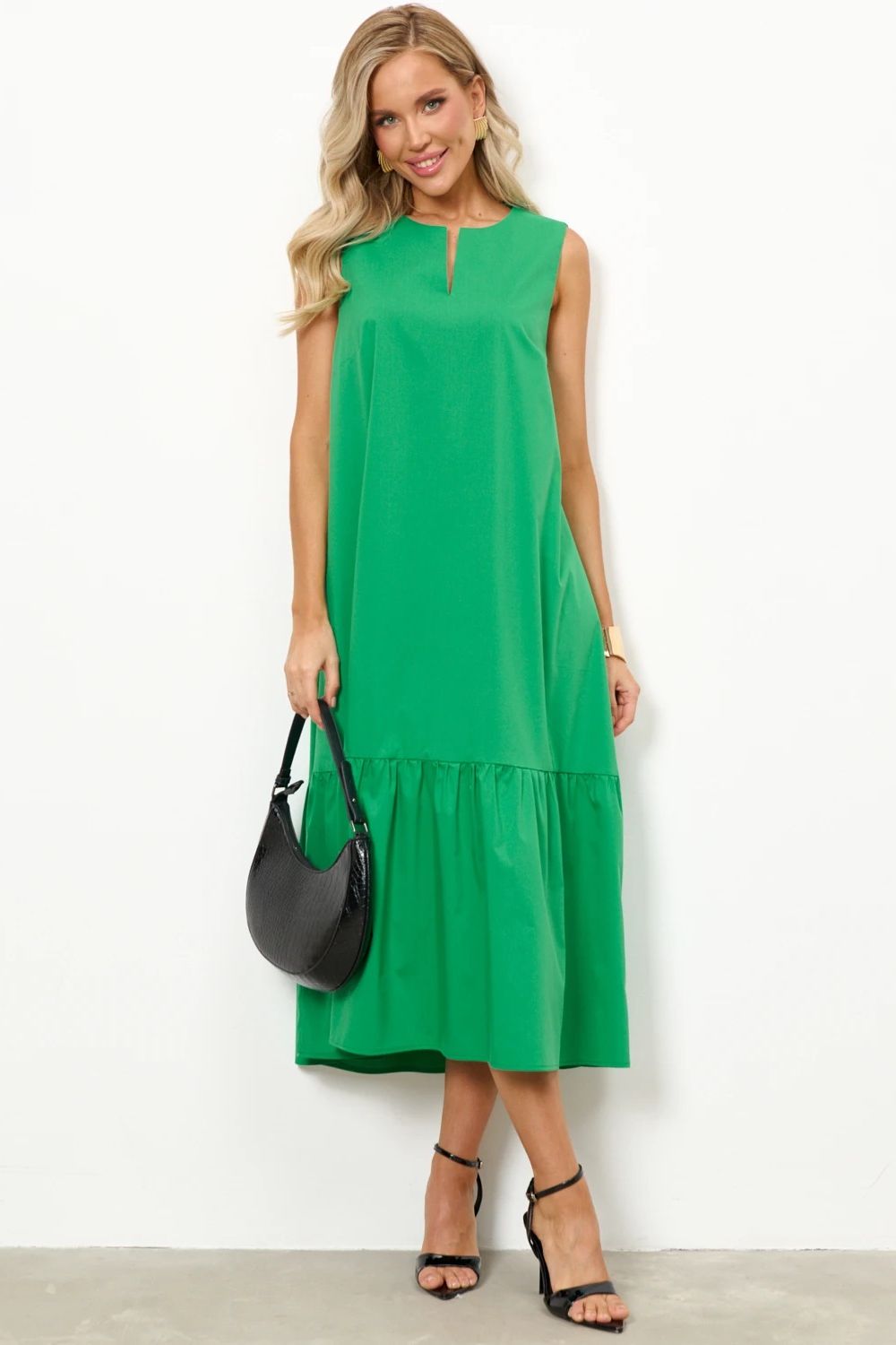 Платье без рукавов зелёного цвета