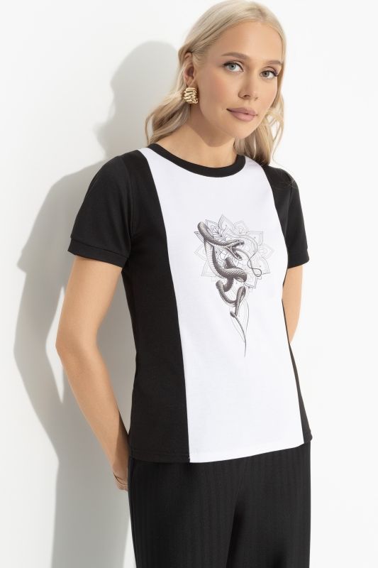 Футболка чёрная комбинированная с принтом