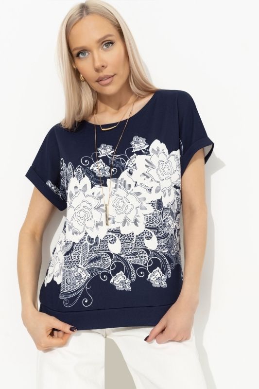 Футболка синяя трикотажная с принтом