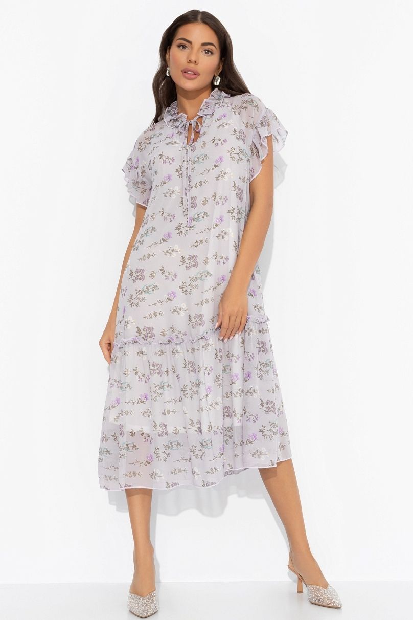 Платье серое шифоновое с рюшами