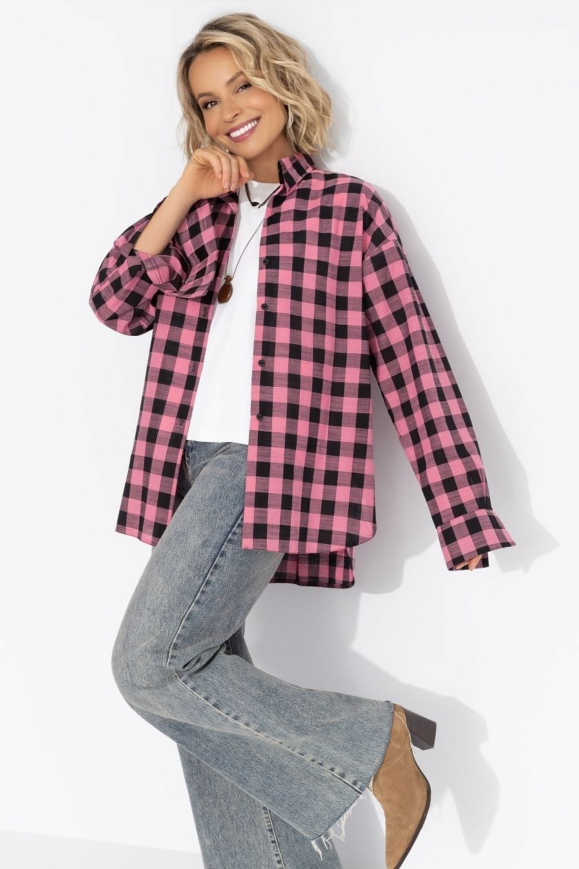Рубашка розово-чёрная в клетку