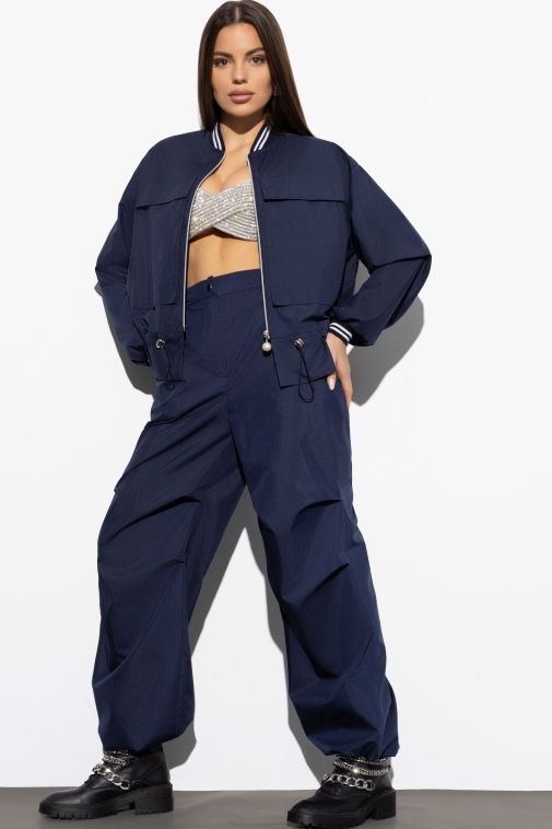 Бомбер синий с карманами