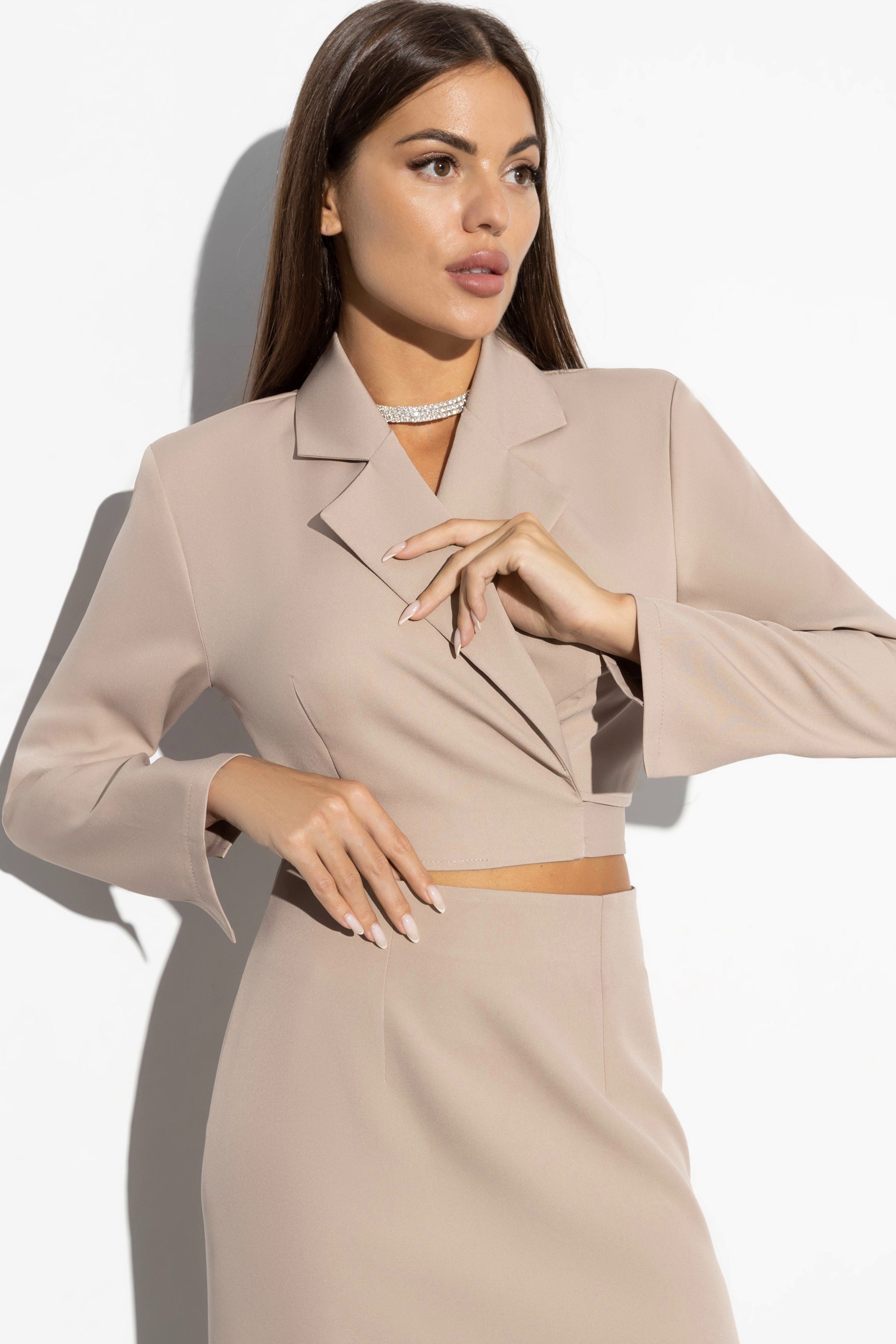 Укороченный бежевый жакет