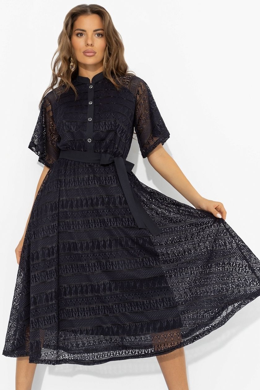 Платье кружевное тёмно-синее на трикотажном подкладе