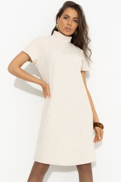 Платье бежевое из плотного трикотажа от компании Charutti. Модель прямого силуэта, воротник-стойка. Втачные короткие рукава. Без застёжки. Это Ваш отличный образ, в котором вы всегда чувствуете себя уверенно.