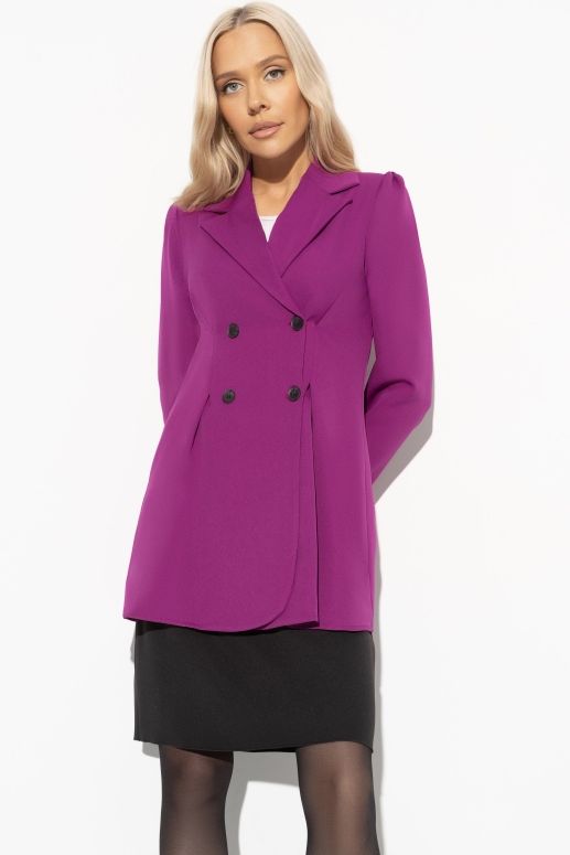 Костюм с удлинённым фиолетовым жакетом и юбкой