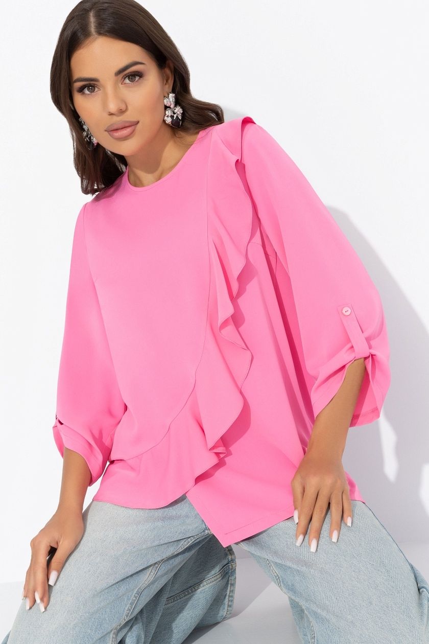 Блузка розовая с рюшами от компании Charutti. Модель свободного силуэта, выполнена из плательного полотна "ниагара". Блуза имитирует запах. Объемный декор по передней части изделия. Рукава три четверти с подхватом на пуговицы. Идеальный выбор на каждый день.