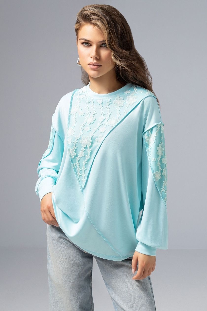 Свитшот комбинированный мятного цвета с кружевом