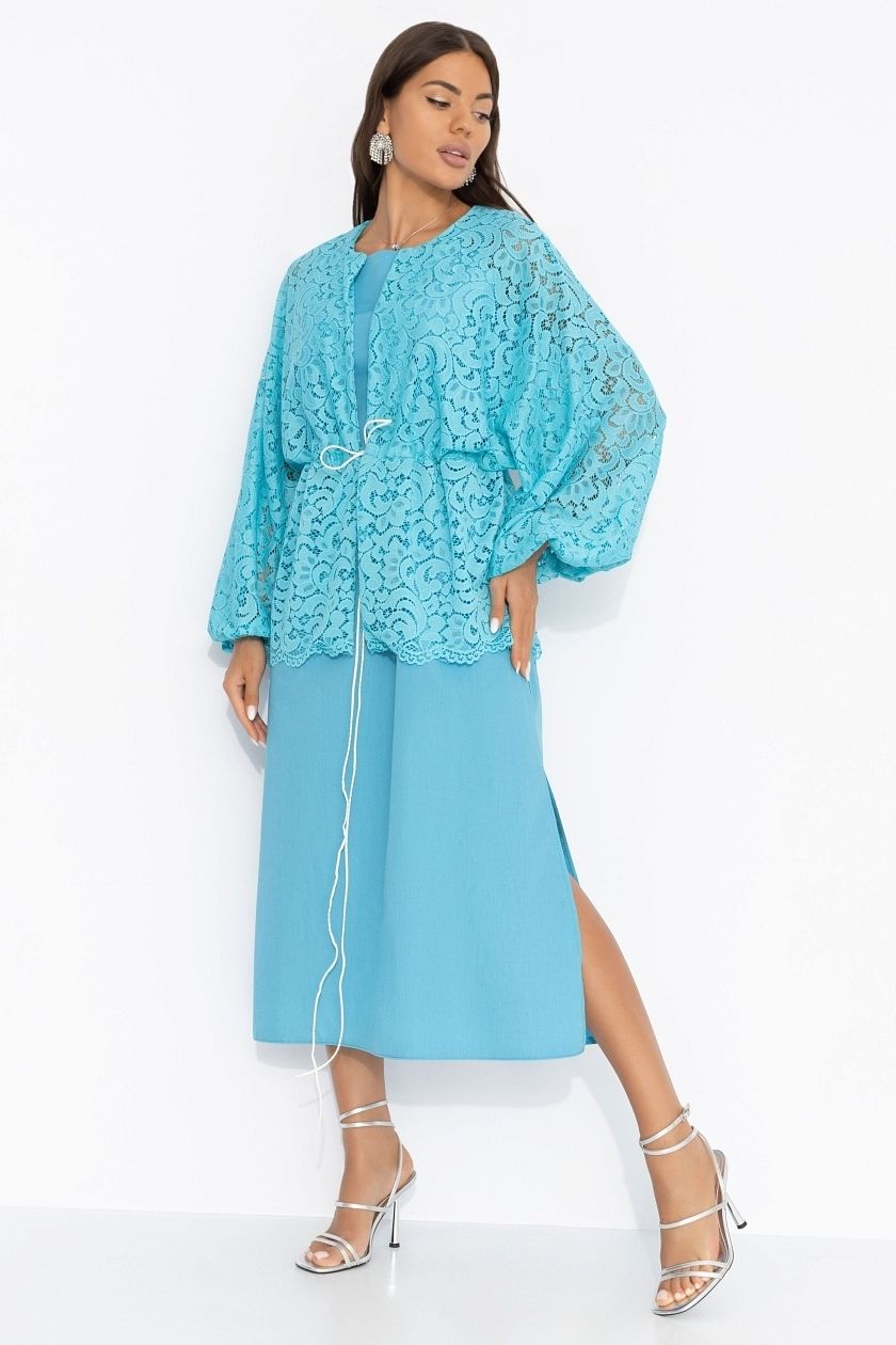 Костюм-двойка бирюзовый с кардиганом из кружева