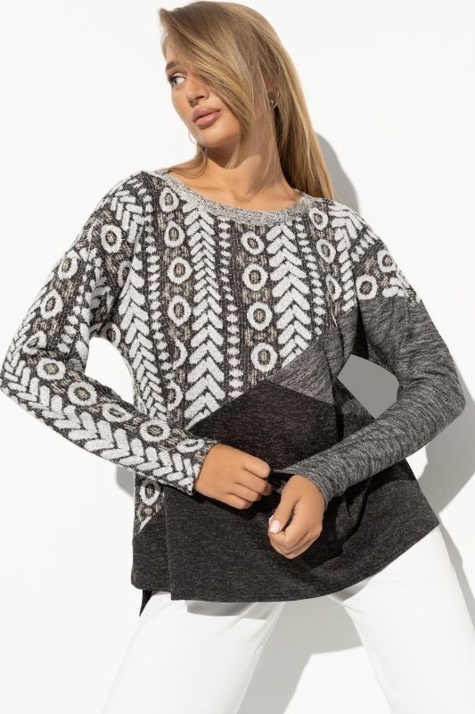 Туника трикотажная серая с этническим принтом