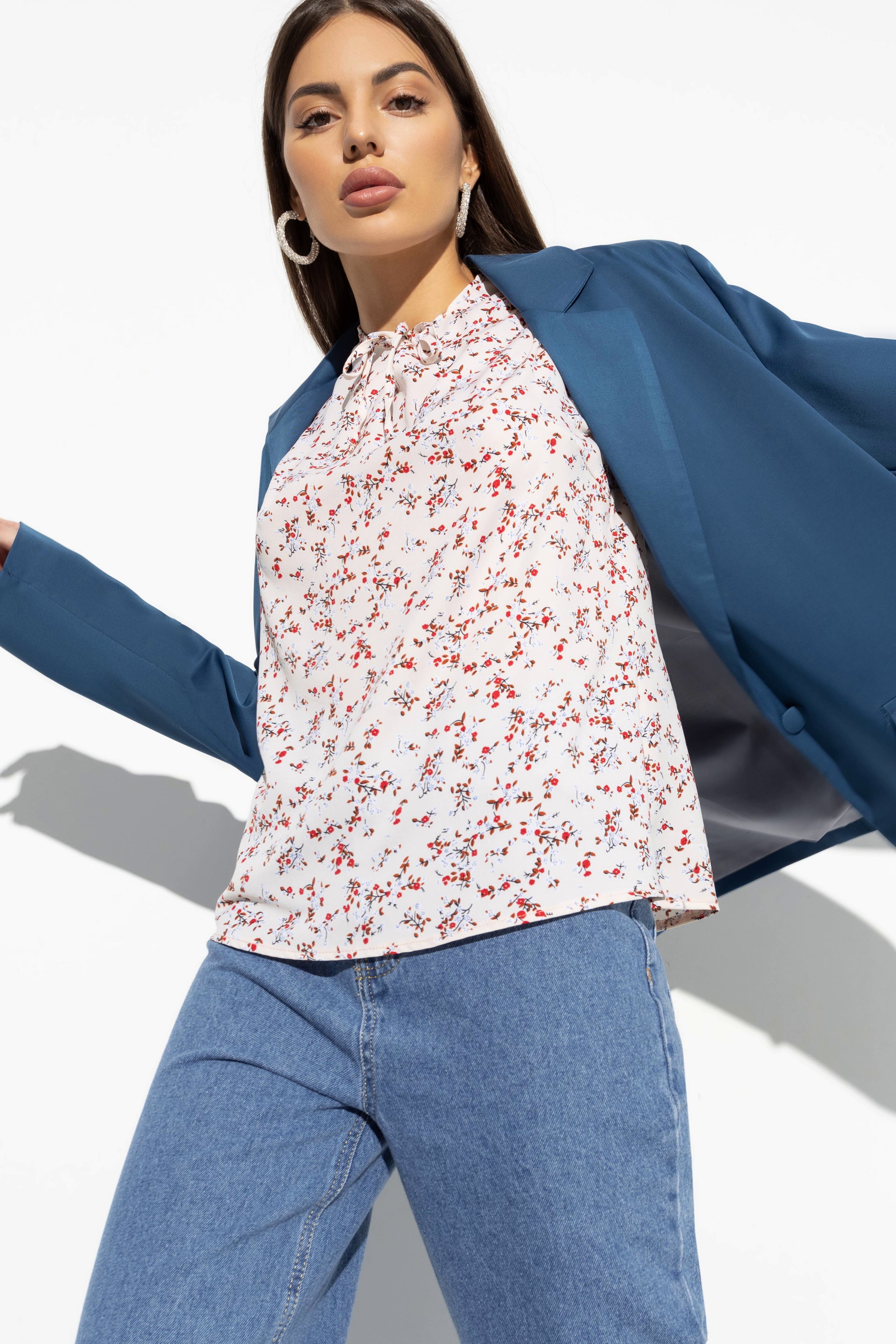 Бежевая блузка с цветочным принтом