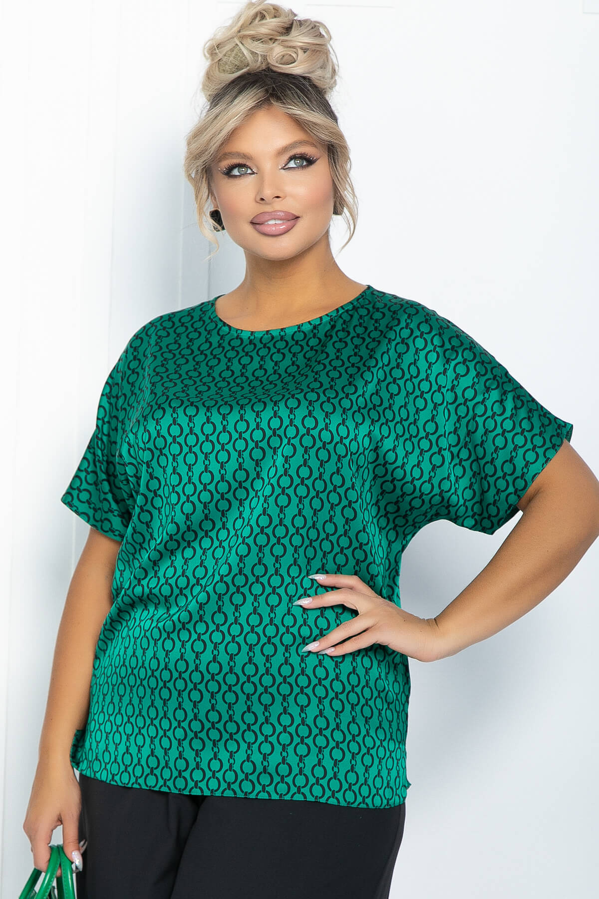 Блуза зелёная с принтом