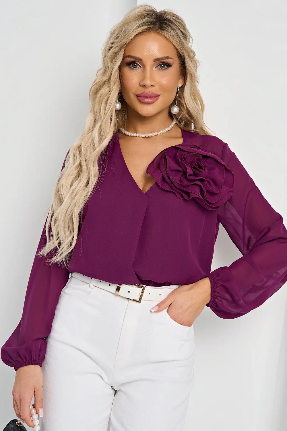 Блузка однотонная с объёмным цветком