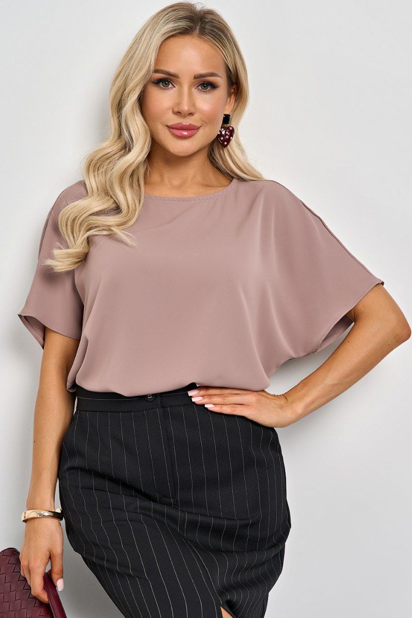 Блузка однотонная тёмно-бежевого цвета от компании Jetty. Изделие прямого силуэта, выполнено из блузочной ткани. С круглым вырезом горловины и цельнокроеными короткими рукавами. Интересная блуза хорошо комбинируется с однотонными юбками, брюками или джинсами. Прекрасный выбор для Вашего повседневного гардероба.