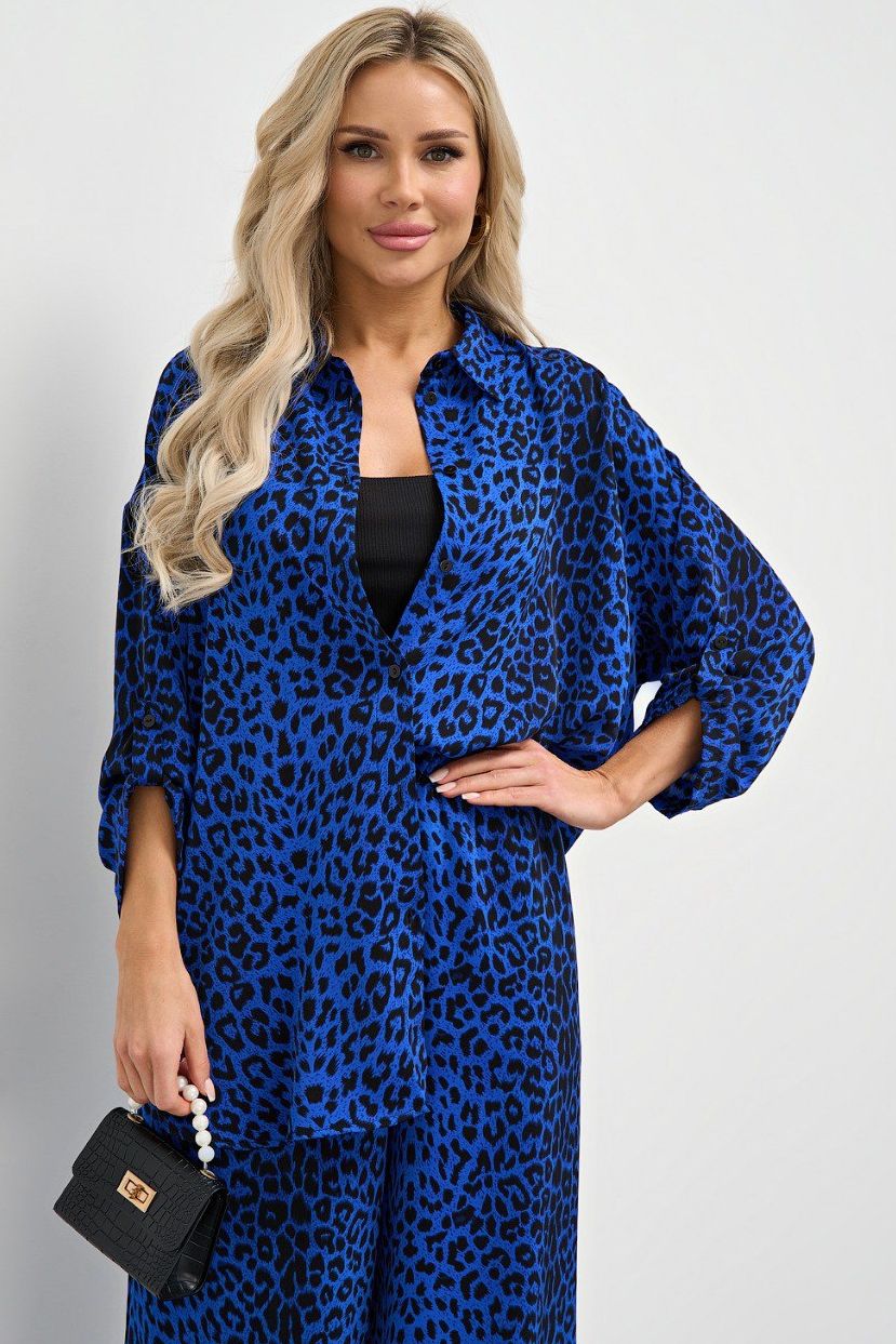 Рубашка синяя с леопардовым принтом