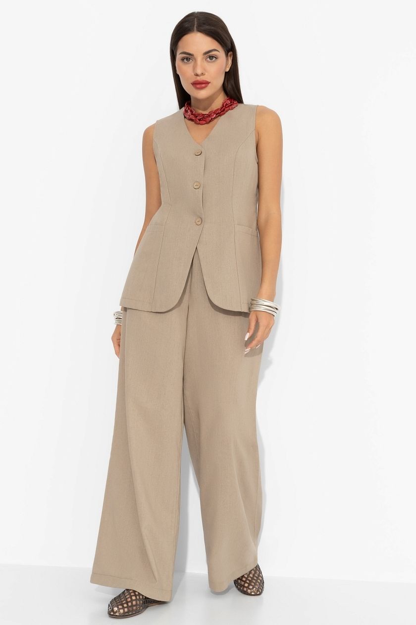 Лосины утеплённые бежевые рубчик с высокой посадкой
