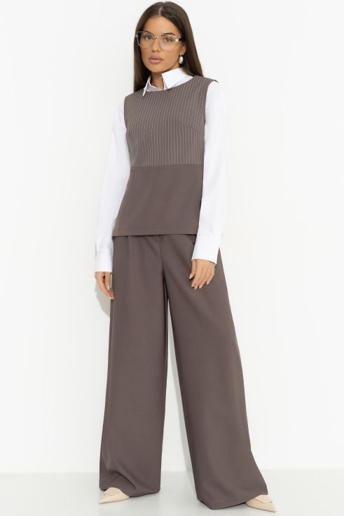 Брюки-палаццо коричневые с карманами