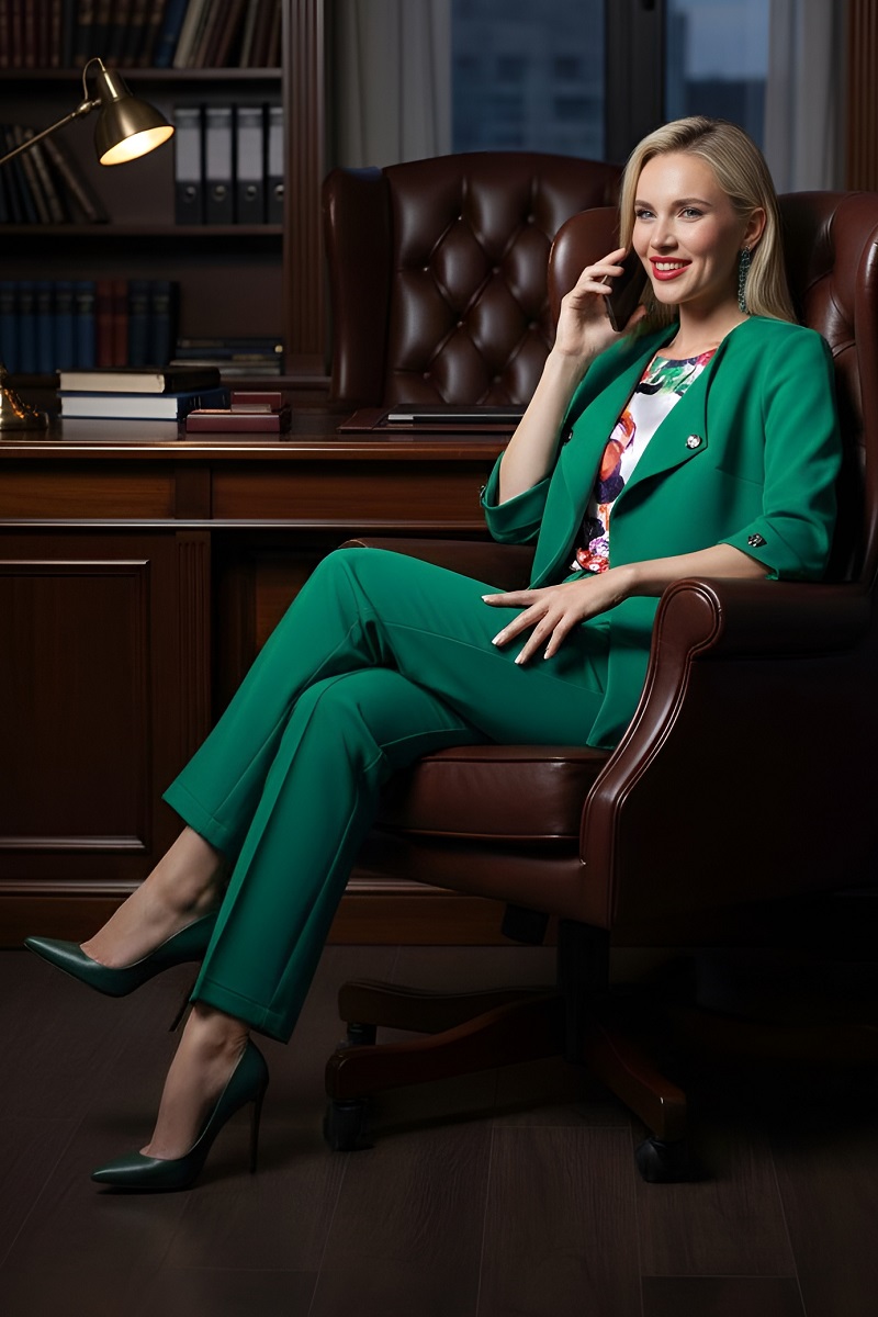 Костюм-тройка зелёный с брюками Планы на перспективу, грин