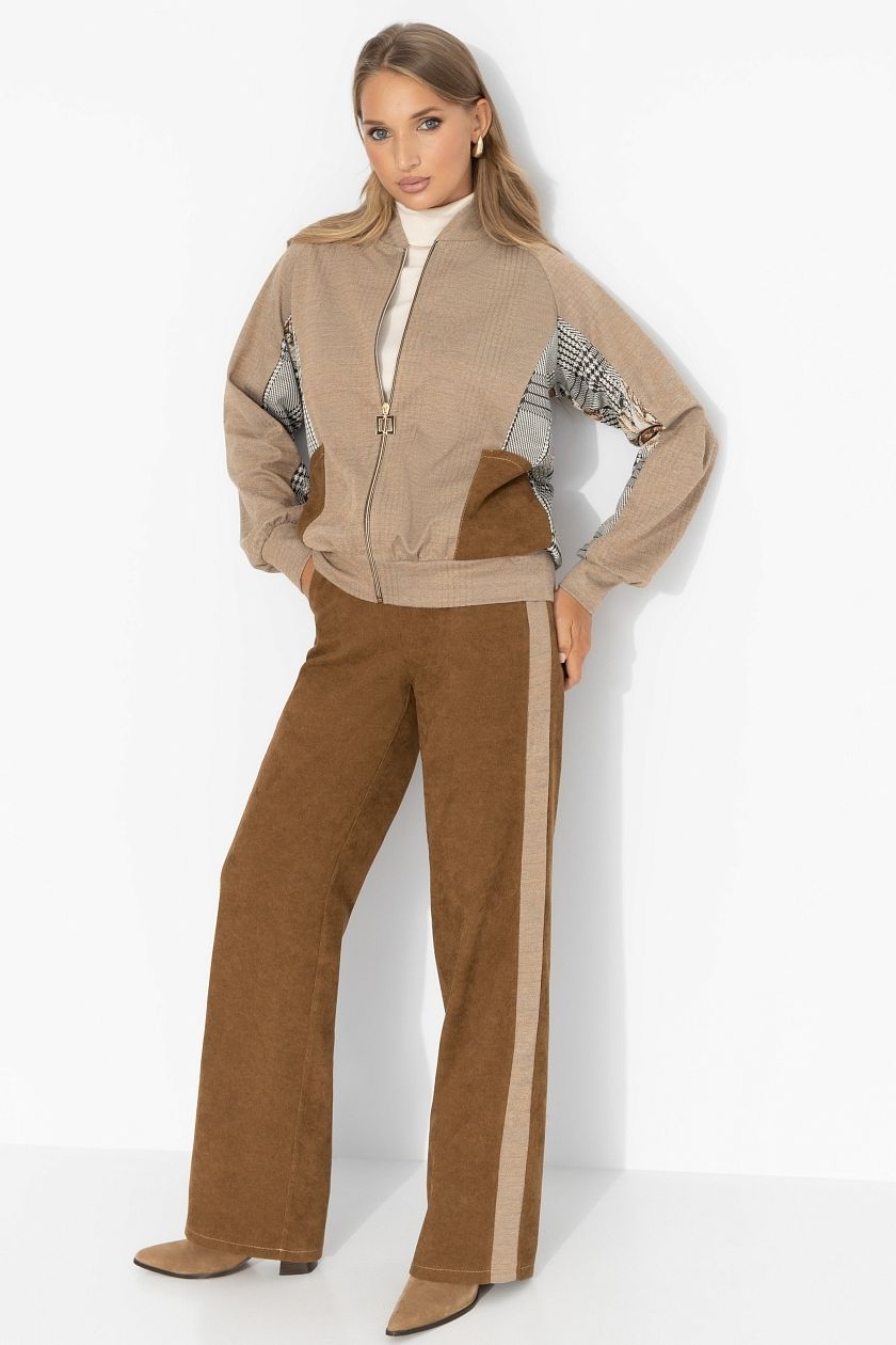Костюм брючный вельветовый от производителя Charutti. Брюки прямого кроя, пояс на резинке. Акцентные лампасы, есть карманы. Бомбер с застёжкой на молнию. Стильный вариант для создания повседневного образа.