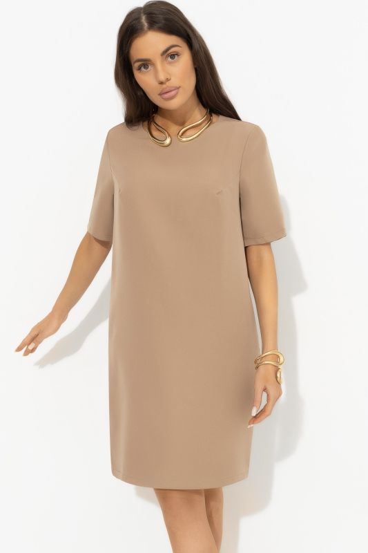 Платье бежевое с карманами