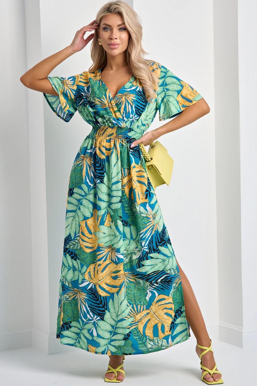 Платье длинное лёгкое с коротким расклешенным рукавом