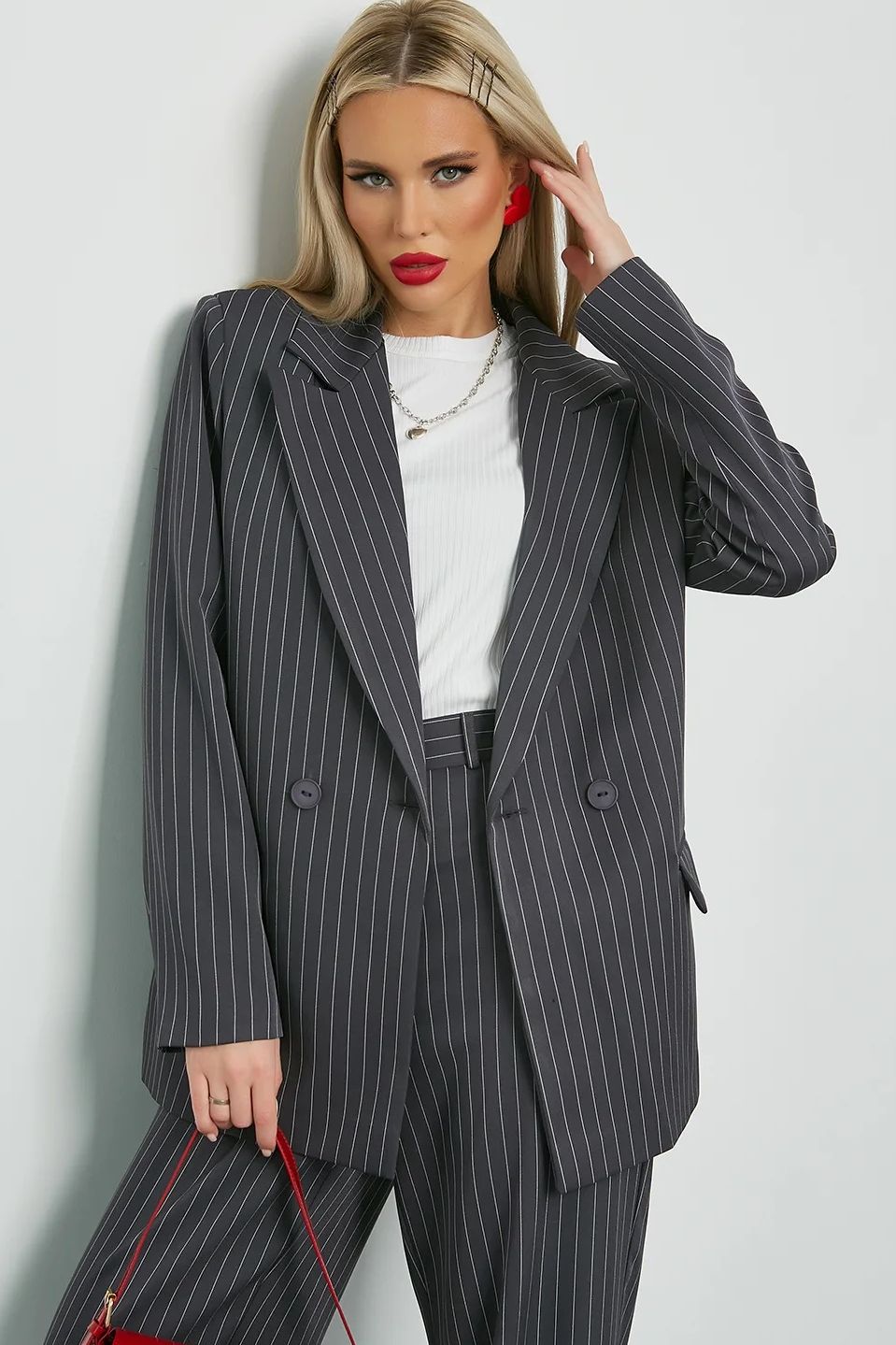 Жакет в полоску в полоску от бренда Jetty. Модель свободного силуэта выполнена из костюмной ткани. Втачные длинные двухшовные рукава. Воротник пиджачного типа. Двубортная застёжка-пуговицы. Спинка со средним швом. Жакет на подкладе. Отличный выбор для прохладного вечера.